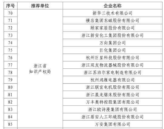 【公告公示】浙江省2019年度国家知识产权优势示范企业评审和复验结果公示